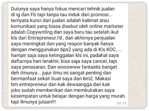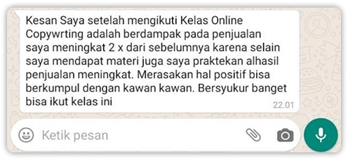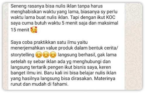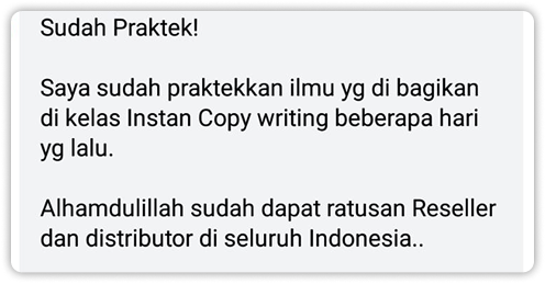 Kalau sampai sekarang sudah ribuan bisnis yang penjualannya makin baik karena belajar ilmu Copywriting.