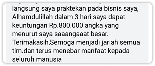 Asiknya, semua ilmu barusan terbukti menghasilkan, karena sudah banyak yang merasakan manfaatnya seperti mereka ini